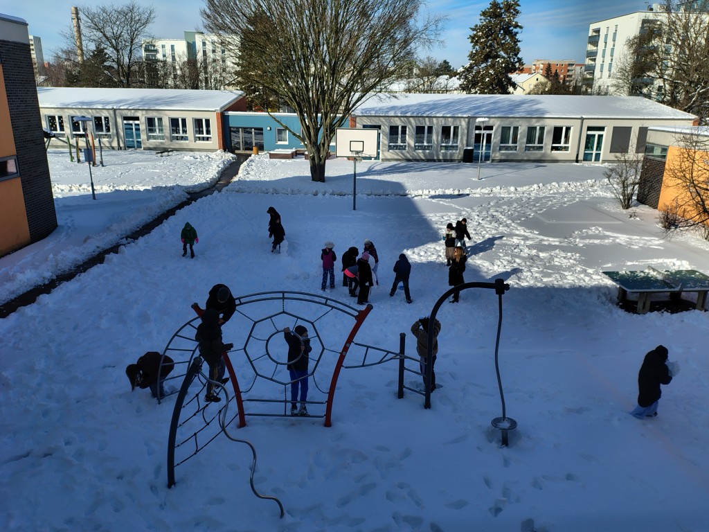 Viel Spaß hatten die Kinder in diesen Tagen mit dem Schnee auf dem Pausenhof.