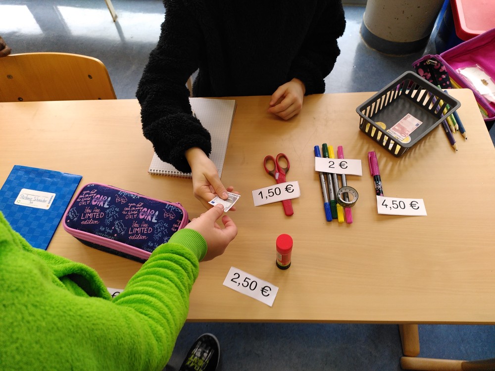 Um den (praktischen) Umgang mit Geld einzuüben, spielten die Kinder der 3a im Matheunterricht "Einkaufen".