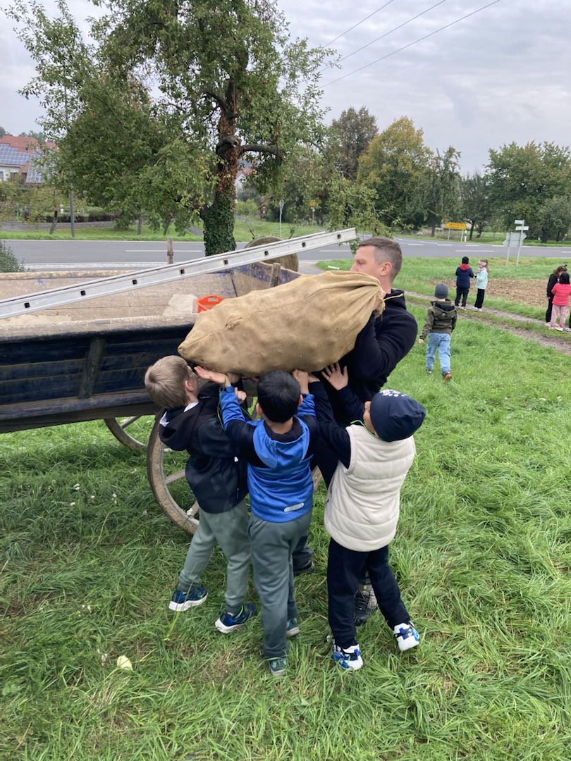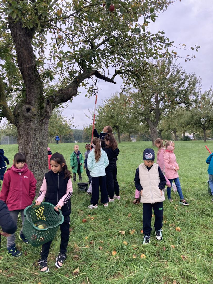 Ende September machten sich die Klassen 2a, 2b und 2c gemeinsam auf den Weg zur Streuobstwiese nach Schleerieth.