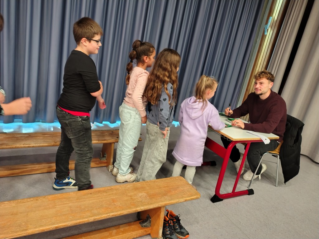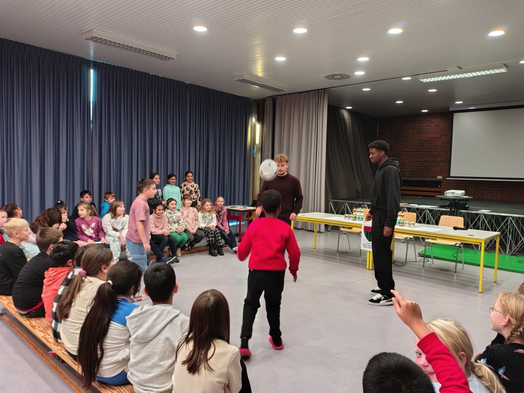 Zwei Fußballspieler des FC Schweinfurt besuchten die Dritt- und Viertklässler, beantworteten Fragen, zeigten ihr Können gemeinsam mit ein paar Kindern und verteilten als Highlight zum Abschluss Autogramme und Freikarten.