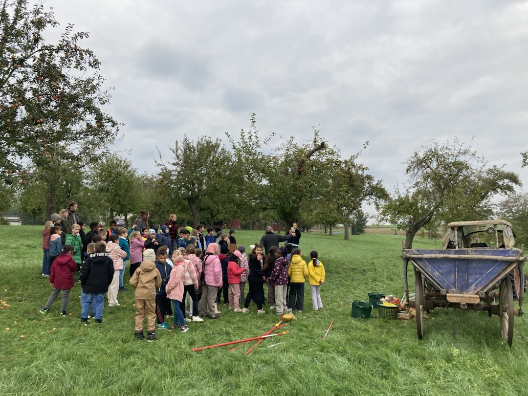 Ende September machten sich die Klassen 2a, 2b und 2c gemeinsam auf den Weg zur Streuobstwiese nach Schleerieth.
