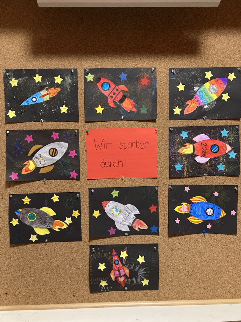 Passend zum Start des neuen Jahres gestalteten die Kinder der 2a im Kunstunterricht tolle Kunstwerke zu ihren Wünschen und Vorsätzen für das Jahr 2026.